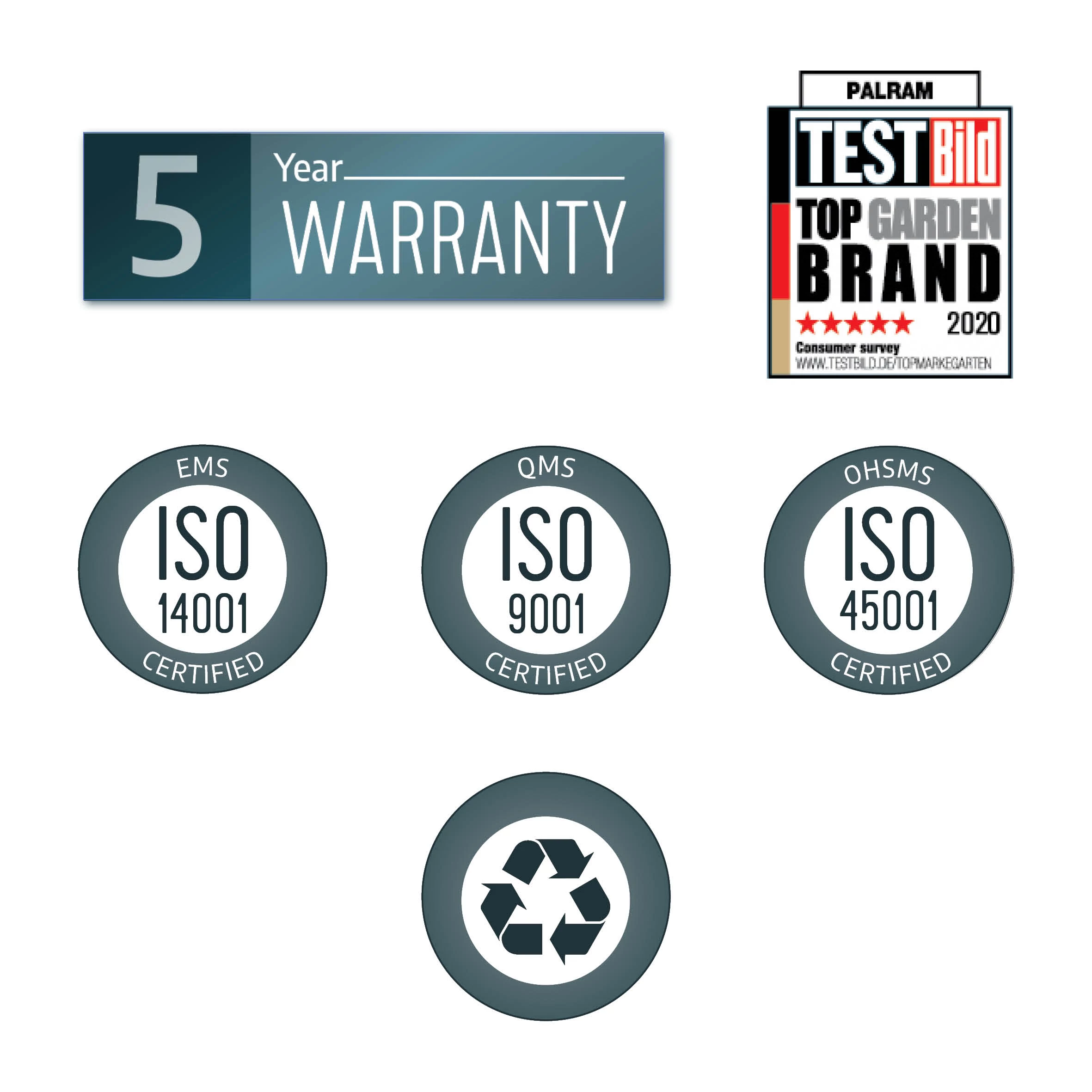 • Strong, grey powder coated, corrosion resistant aluminium frame for long lasting durability